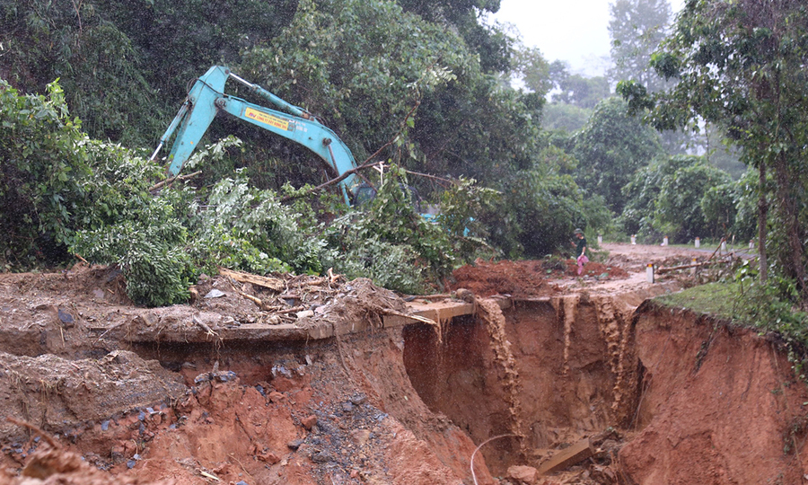 Cục quản lý đường bộ đang nghiên cứu điểm sạt lở của đường Hồ Chí Minh. Ảnh: Hoàng Apple.