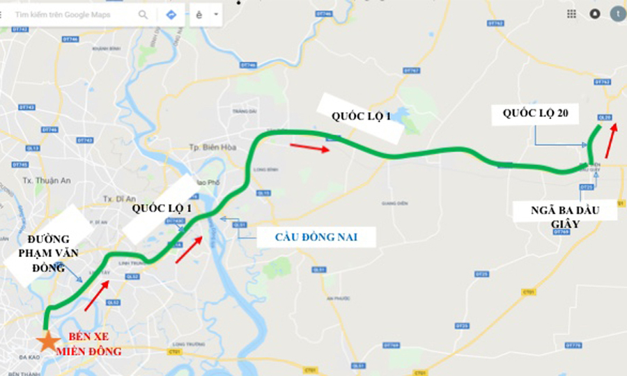 Từ Thành phố Hồ Chí Minh đi các tỉnh phía Bắc, tuyến 1: Quốc lộ 13 trục-Đường Phạm Văn Đồng-Quốc lộ 1-Cầu Đồng Nai-Cầu Vũng Tàu-Đường 1 (Ngã tư Dầu Giây) -Tỉnh miền Bắc-Được phát minh từ TP. Từ thành phố đi các tỉnh phía Bắc, lộ trình 1: Lộ 13-Phạm Văn Đồng-Lộ 1-Cầu Đồng Nai-Cầu vượt Ngã ba Vũng Tàu-Quốc lộ 1 (Ngã tư Dầu Giây)-Tỉnh Bắc Bộ.