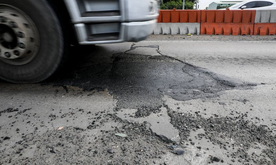 Cũng tại thành phố Thần Tử Nghĩa ở ngã tư đường cao tốc, ngay cả khi lớp nhựa đã được sửa chữa tạm thời, vẫn có nhiều bộ phận bị hư hỏng.